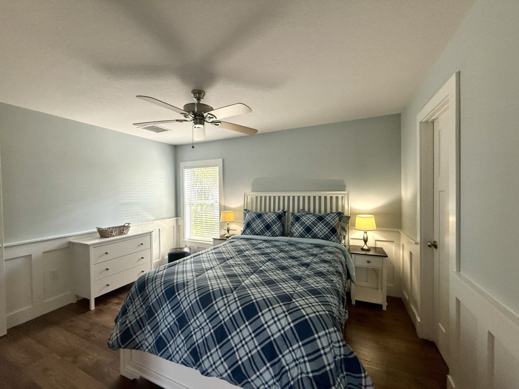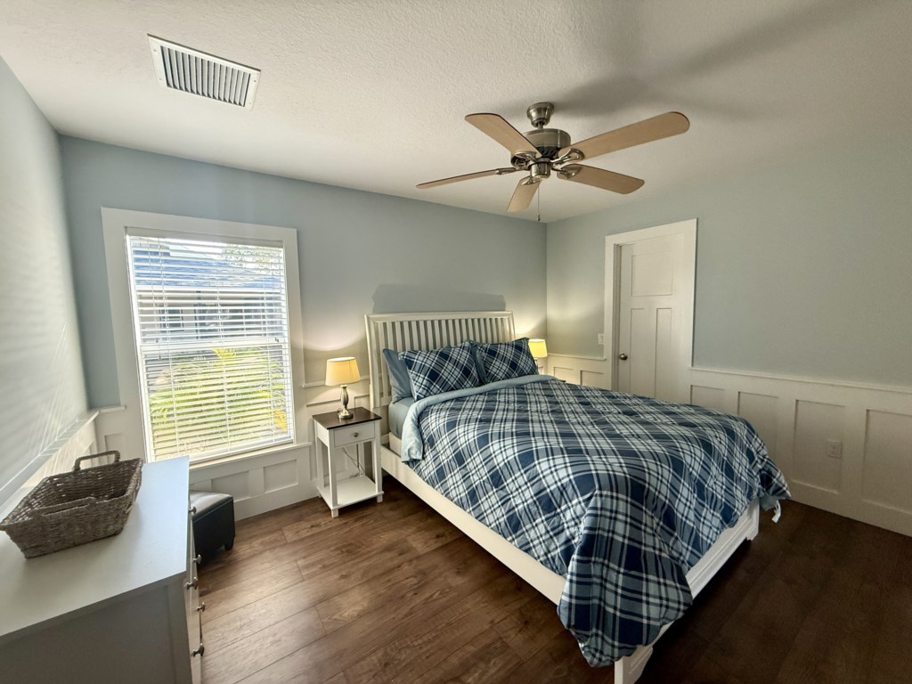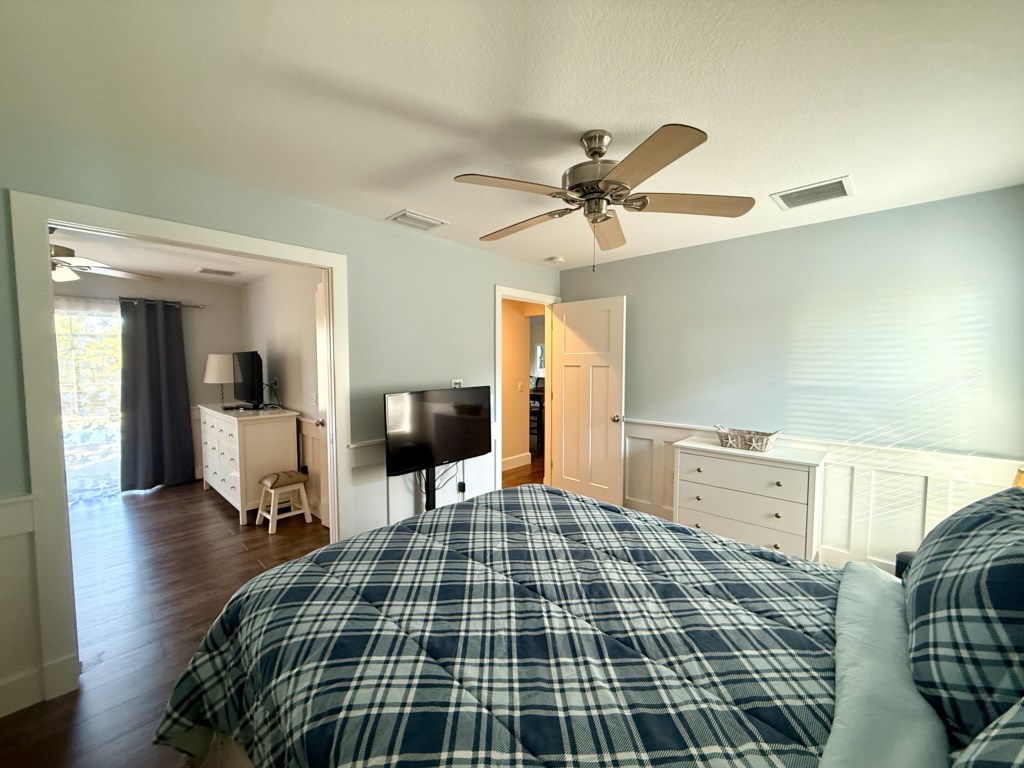 Ready to recharge? The spacious primary suite is your private sanctuary, complete with a king bed, flat-screen TV, walk-in closet, and sliders to the pool deck. The spa-like en-suite bathroom features dual vanities, a walk-in shower, and a luxurious soaking tub for when you're in full vacation mode! Across the home, two more inviting bedrooms offer plenty of privacy for your guests. The second bedroom has a queen bed, flat-screen Smart TV, and walk-in closet. The third bedroom features a queen sleeper sofa, its own TV, and direct access to the lanai—perfect for extra guests or teens looking for a bit of privacy and their own retreat. The shared guest bathroom includes a single vanity, walk-in shower and direct pool access for easy rinse-offs after a swim.