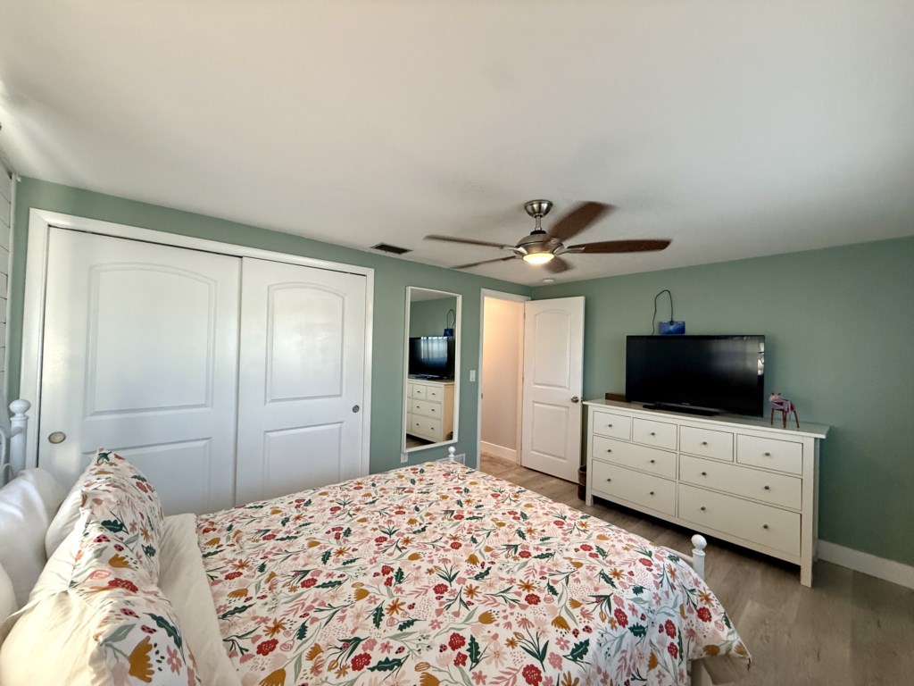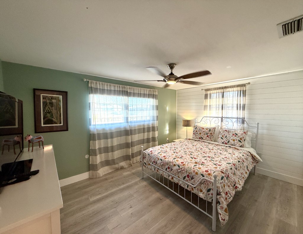Enjoy a “siesta” in the primary bedroom with beautiful modern décor, appointed with a king bed, walk-in closet, floor full length standing mirror, ceiling fan, and a flat-screen Smart TV. Open the barn door to your very own en-suite bathroom - offering nice finishes, subway tiles, a single sink over a large wood vanity giving you lots of counterspace, a walk-in shower with pebble flooring and glass door. The second bedroom offers a queen size bed and a flat screen Smart TV. The guest bathroom has beautiful finishes as well, a single vanity with a sink, granite countertop, and a shower-over-the-tub combination. All bathrooms have hair dryers. Separate laundry room with washer and dryer - All linens, towels and pool towels are provided. The home has Smart TVs, Wi-Fi, and also facilitates a convenient self-check-in lockbox process, so you can start your vacation from the moment you arrive!