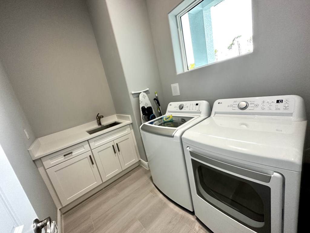 The separate laundry room is fully equipped with a washer, dryer, and a utility sink. Stay connected with Wi-Fi and streaming TV throughout the home. In the spacious 3-car garage, you’ll find everything you need for beachside adventures—4 adult bicycles, beach chairs, umbrella, and a cooler are all included. Plus, we’ve added a brand-new commercial-grade ping pong table for some friendly family competition! With convenient self-check-in via a keypad system, your vacation begins the moment you arrive.