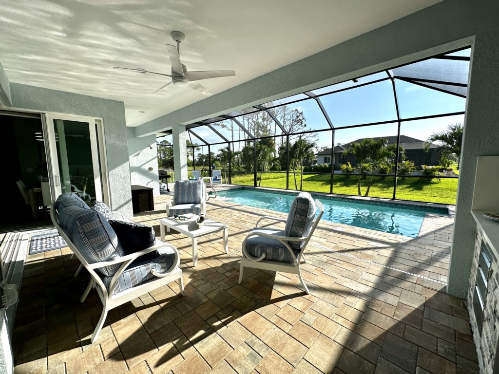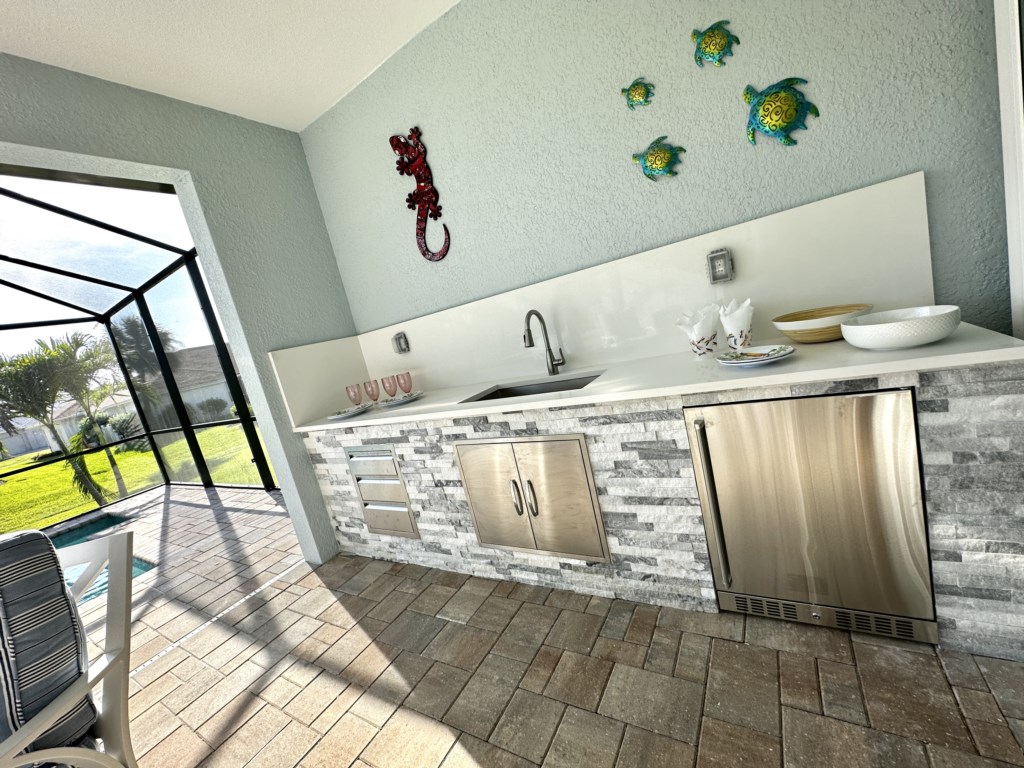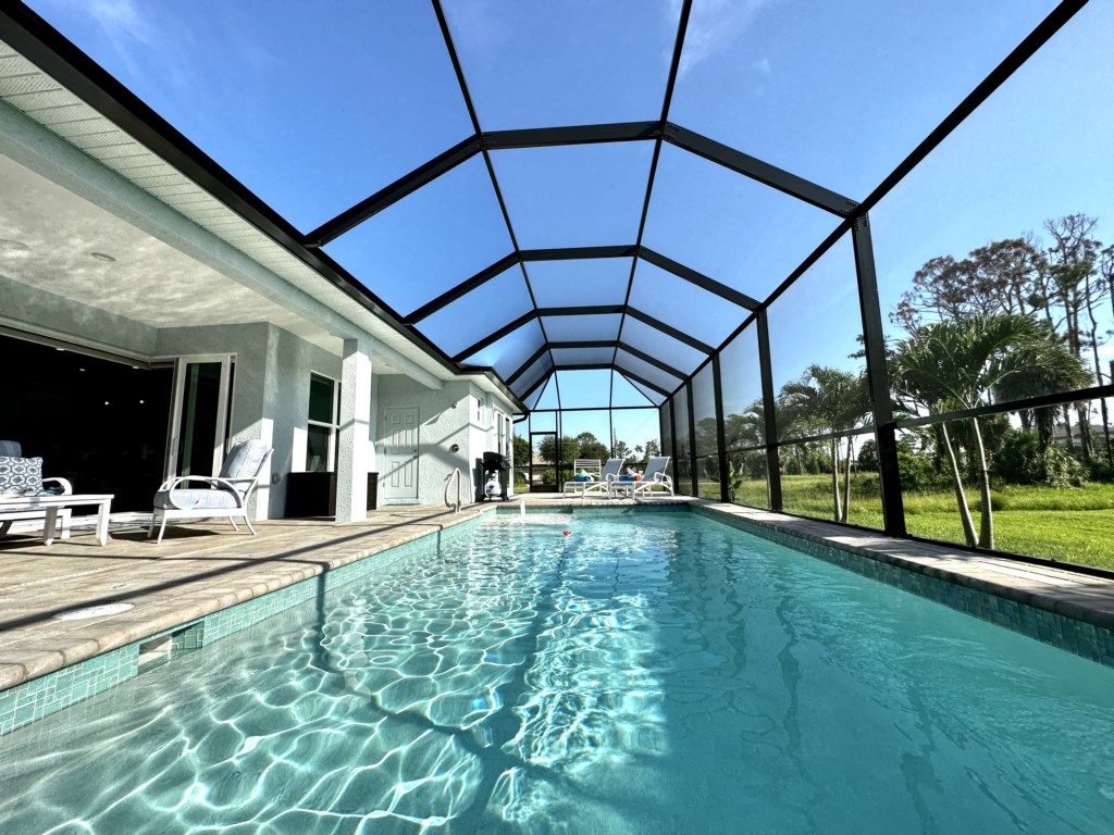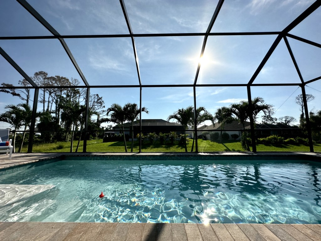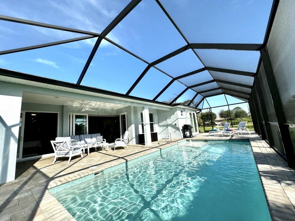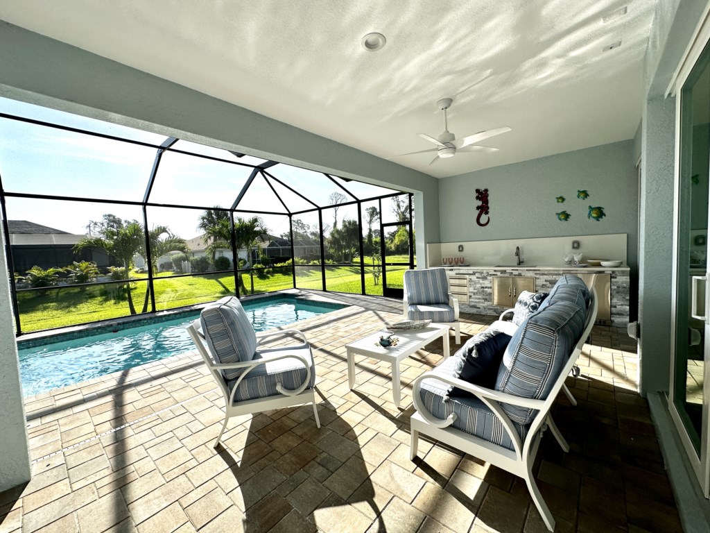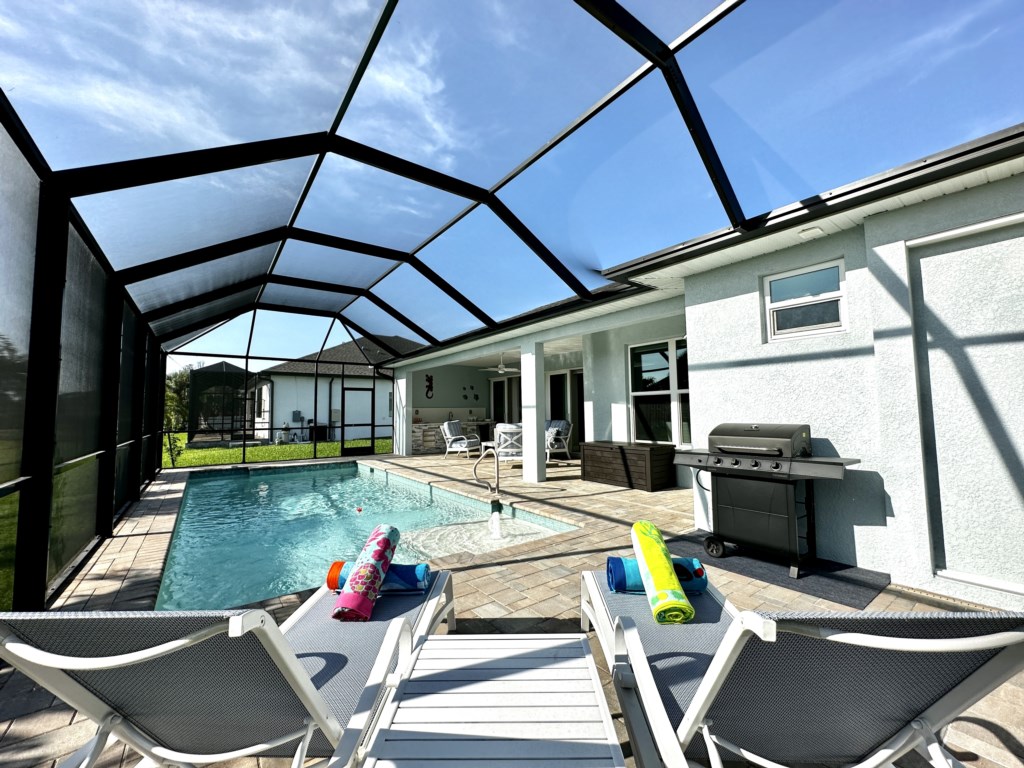 After a sun-soaked day by the coast, retreat to your private resort-style oasis—where the good times keep flowing! Sip on a refreshing cocktail at the outdoor wet bar, unwind beneath the shade of the covered lanai, or stretch out on a lounger and soak in the Florida sunshine on the expansive pool deck. Framed by a full-screen enclosure, the outdoor living space invites you to embrace the natural beauty of Florida's lush tropical vegetation and local wildlife. The sparkling pool—heated during the cooler months—promises year-round relaxation. And when it’s time to gather with friends or family, fire up the standalone gas grill and enjoy a delicious poolside feast!